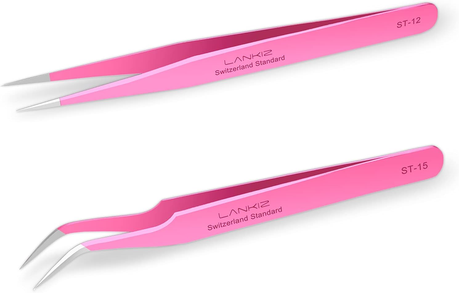 Lankiz provides a versatile and durable tweezer set for both beginners and experienced lash artists. The set includes straight and curved tweezers made of premium stainless steel with anti-static coating.