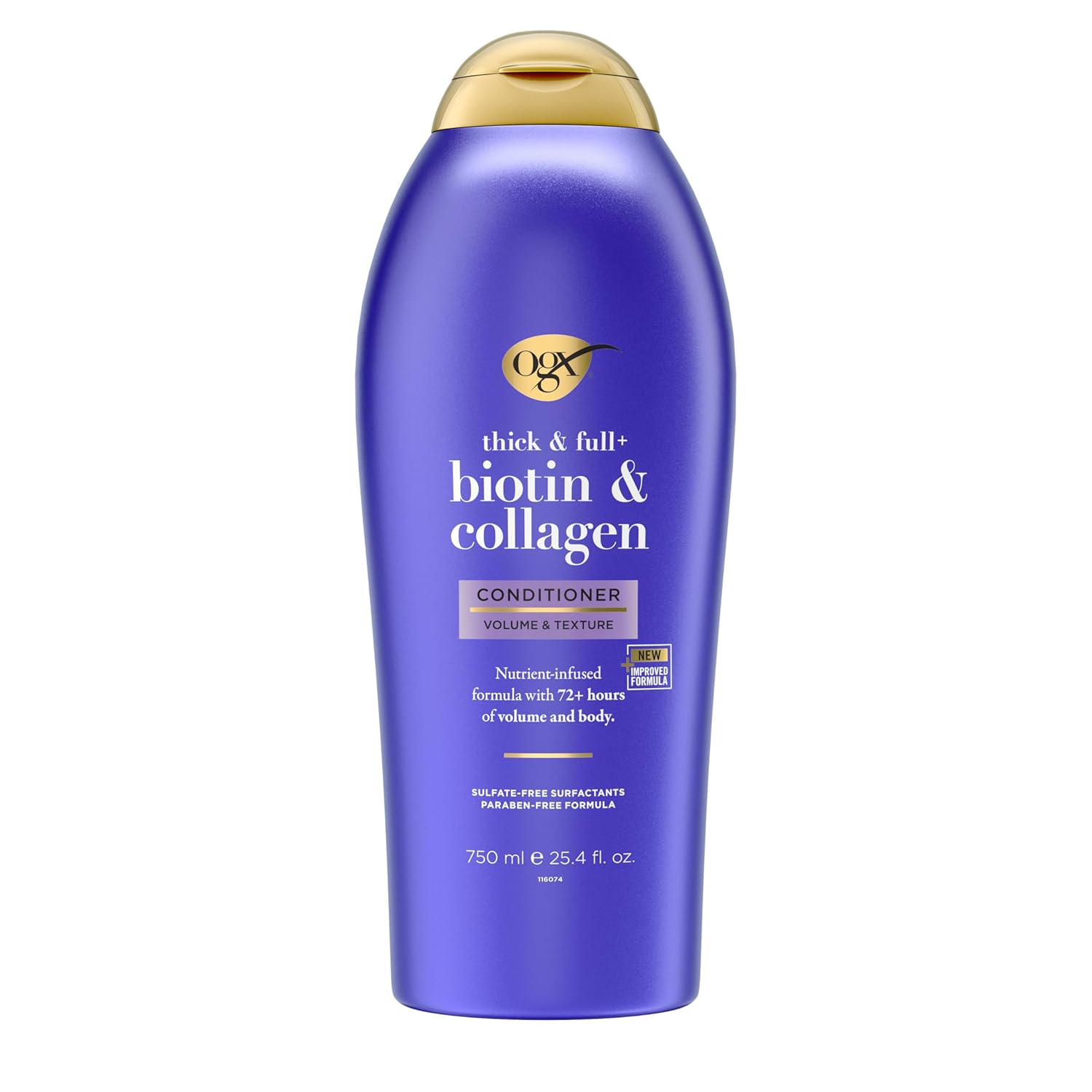 OGX Biotin & Collagen Conditioner works to plump each strand for fuller-looking hair. Infused with biotin, collagen, and hydrolyzed wheat protein, it strengthens hair while adding weightless volume. Fine hair feels thicker without being greasy.
